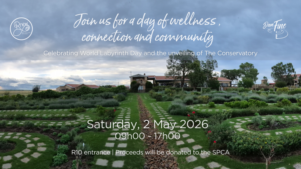 Set on the water’s edge of the Vaal Dam, R’new offers a truly unique and peaceful setting featuring one of South Africa’s largest Botanical Chartres-style labyrinths, ancient Khoisan stone circles, and sweeping views across the surrounding private game farm.